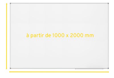 Pour les travaux de groupe, l'élaboration de solutions et de thèmes complexes dans des zones ouvertes, interdépartementales ou dans des bureaux paysagers, les tableaux de 1000 x 2000 mm ou plus sont un must. Mais les tableaux blancs grand format sont également de plus en plus populaires dans les universités, les bureaux d'architectes ou d'ingénieurs, ou encore dans les écoles en remplacement des anciens tableaux à craie. Si vous avez de grands projets, vous pouvez opter pour un grand tableau.
