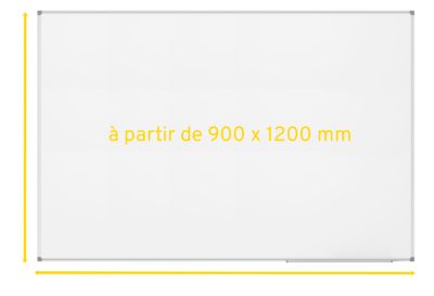 Ni trop grand, ni trop petit - un juste milieu, en somme. Les tableaux blancs de taille moyenne sont particulièrement appréciés lorsqu'il s'agit d'équiper des salles de réunion et de séminaire. Les esquisses, les schémas et les idées ne manquent pas de place sur la surface d'écriture. Mais les exemplaires de taille moyenne fonctionnent aussi parfaitement comme support de présentation pour les plans de projet ou comme tableau d'information dans les salles d'attente et les salons.