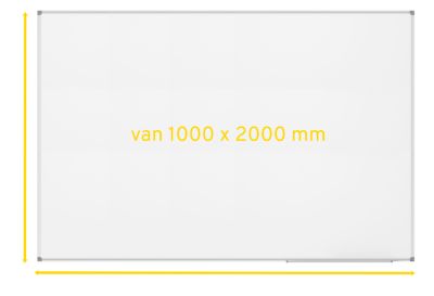 Voor groepswerk, voor het uitwerken van complexe oplossingen en onderwerpen in open, afdelingsoverkoepelende ruimtes of open kantoorlandschappen zijn borden van 1000 x 2000 mm een must. Maar ook op universiteiten, in architecten- of ingenieursbureaus of op scholen worden whiteboards van groot formaat steeds populairder als vervanging van de aloude krijtborden. Als je grote plannen hebt, heb je een groot bord nodig.
